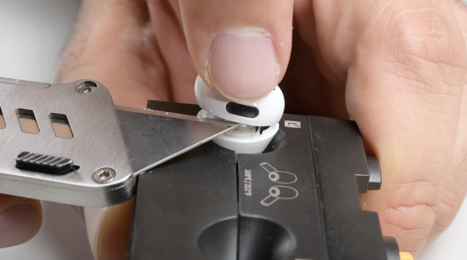Inside each bud, the battery is still glued, which requires a special hot device and pulling a smooth shaft only to release it. Even after that, the possibility of damaging high plastic housing, and if for some reason you succeed, refreshing the device after that is almost impossible. Opening the stem reveals Apple’s H2 chip and microphone, but they are also sealed under the glue layer, making safe repairs a technician’s dream.